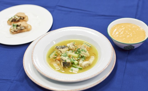 マカジカは北海道を中心に北の海で捕獲される魚ですが、東京、大阪に出回ることはほとんどない珍しい魚とのこと。コンピトゥム札幌市支部が推薦してくださり、魚も仕入れてお送りいただきました。可児先生の授業を30年ぶりに受けたという元教え子は、「懐かしさで一杯」「何を質問してもイタリア料理のことなら何でも答えてくれる」と感慨深げでした。