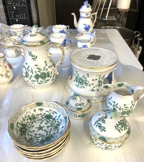 今年は新しい取り組みとして、辻調が写真撮りや来客用に集めたヨーロッパの洋食器の「蚤の市」が開催されました。事前にカタログで選んでいただいていたとはいえ、実際に食器類を手にされると、あらためて品のある美しさに多くの卒業生会員から喜びの声が聞かれました。